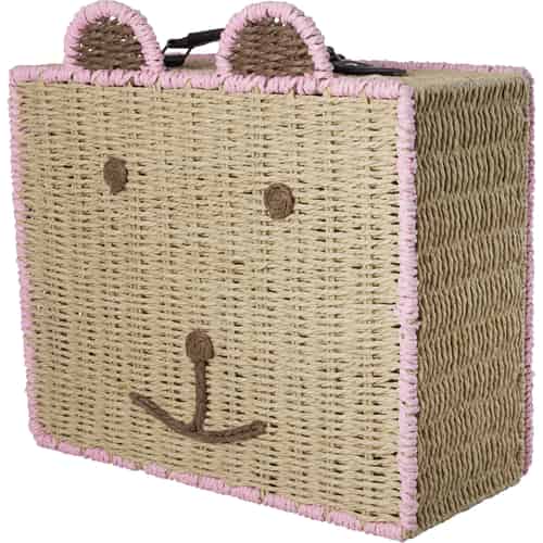 Rice Raffia 3-Nivå Oppbevaringskurv - "Animal Faces" - Rosa På lager