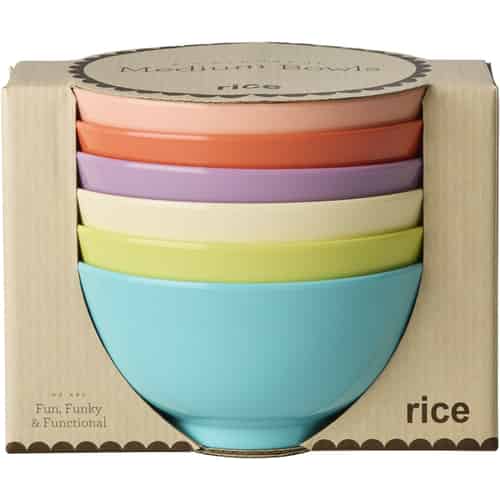 Rice Melaminskåler "Glory Days" Colors - Medium - Sett med 6 i gaveeske På lager