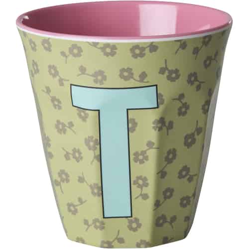 Rice Melaminkopp - Bokstav T - Alfabet - Blomster På lager