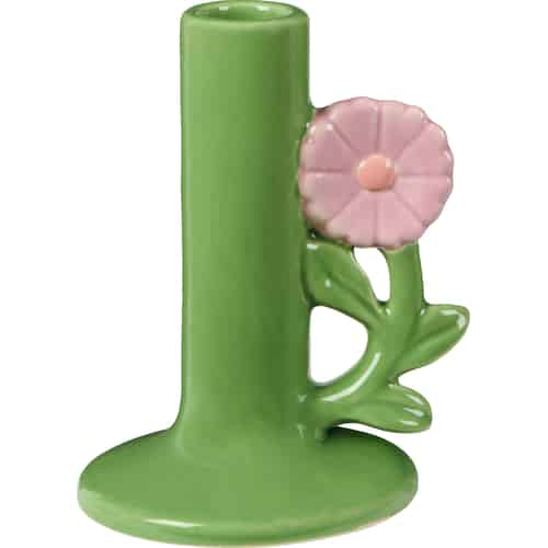Ib Laursen Lysestake - for 2,2 cm lys - Grønn med lyserosa blomst På lager