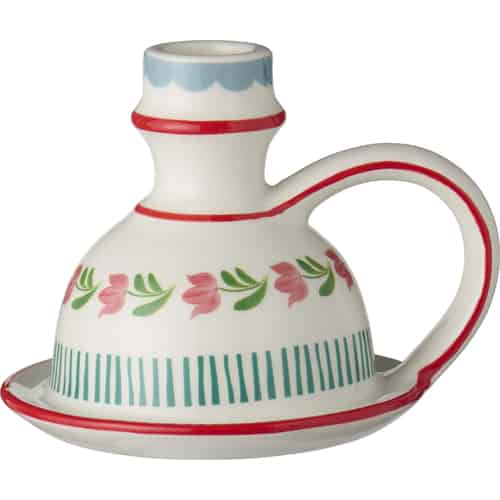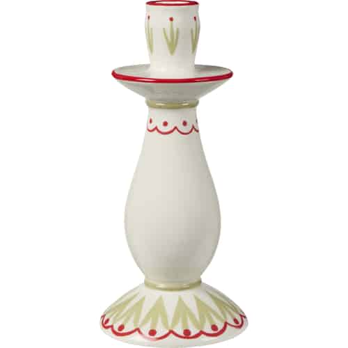 Ib Laursen Lysestake - for 2,2 cm kronelys - Hvit med rødt og grønt mønster På lager