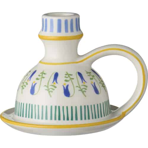 Ib Laursen Lysestake - til 2,2 cm kronelys - Hvit - Blått og gult mønster På lager