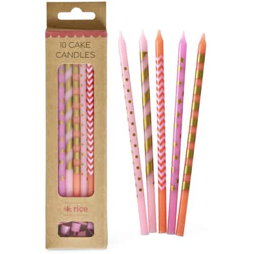 Rice Kalenderlys - Stripete - Rosa og Grønn med Gull Tall - 76 Timer